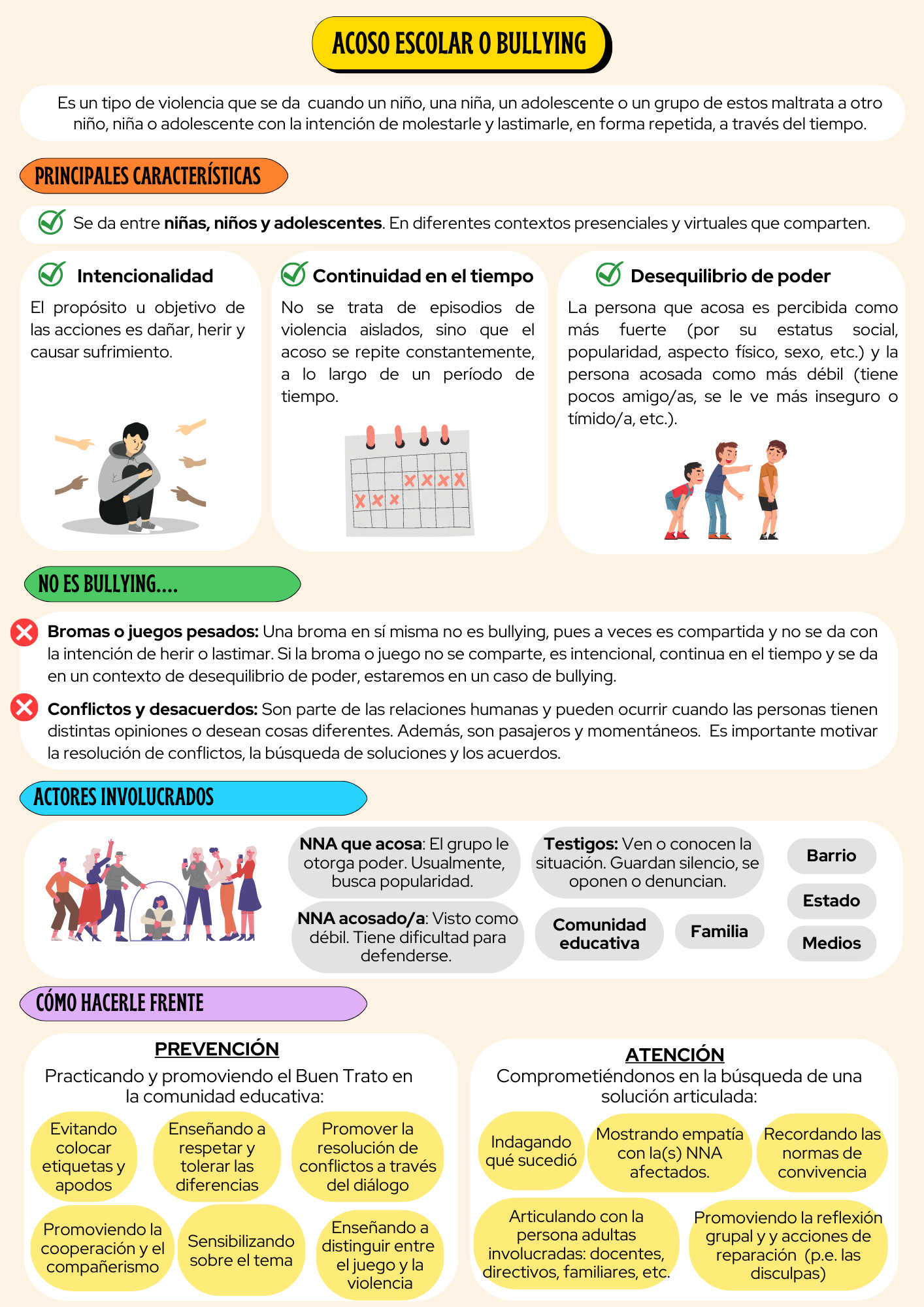 A través de esta sesión buscamos que las y los estudiantes conozcan qué es el acoso escolar o bullying y sepan identificarlo. Asimismo, que conozcan cómo pueden prevenirlo a través del Buen Trato y las acciones pueden realizar para enfrentarlo.